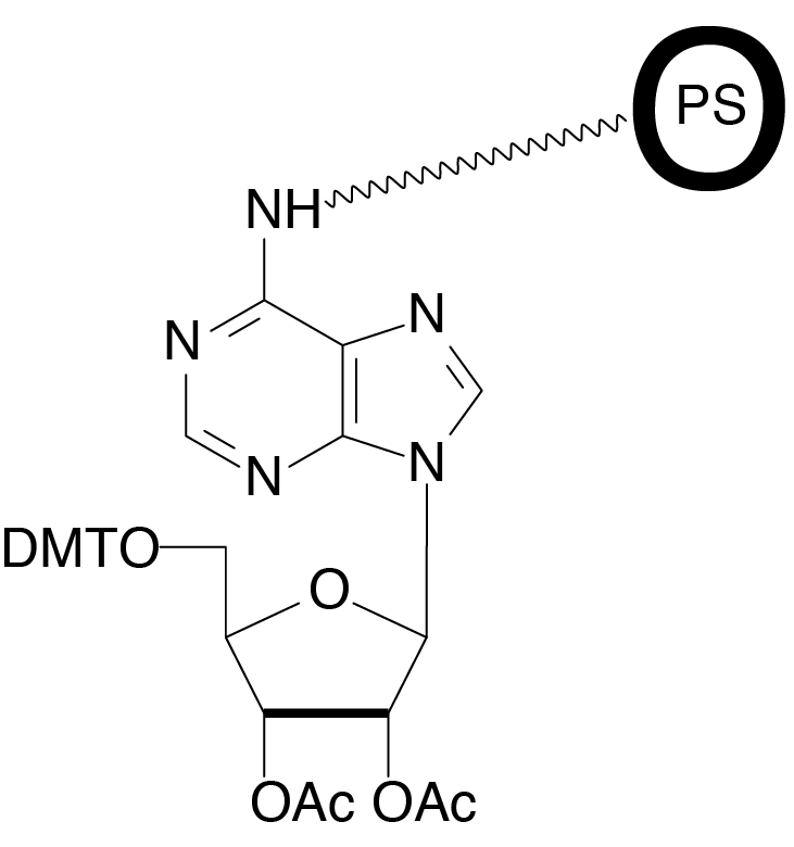 | 5'-Dimethoxytrityl-Adenosine-2',3'-diacetate-N-Linked-Polymeric Support |