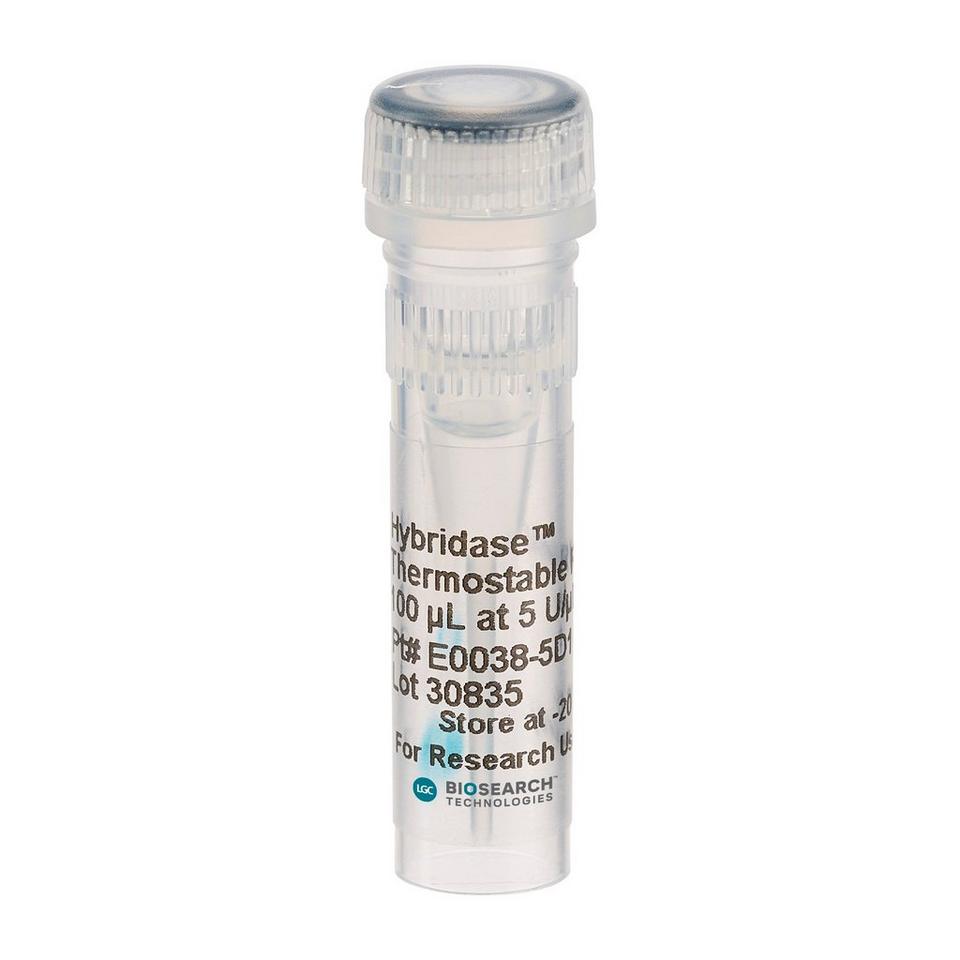 Epicentre's® patented* Hybridase™ Thermostable RNase H specifically degrades only RNA in an DNA:RNA hybrid, without affecting DNA or unhybridised RNA. In contrast to E. coli RNase H, which is rapidly inactivated at 55°C, Hybridase RNase H is active at high temperatures. It has optimal activity above 65°C and can be used at temperatures up to 95°C. The thermostability of the enzyme permits it to be used at temperatures that give the highest hybridisation stringency for specific DNA:RNA heteroduplexes, maximising sensitivity and selectivity while minimising background due to nonspecific hybridisation.