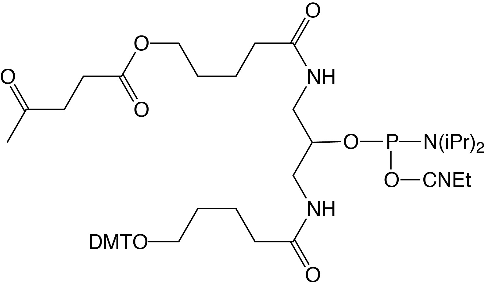 1-[5-(4,4’-dimethoxytrityloxy)pentylamido]-3-[5-levulinyloxypentylamido]-propyl- 2-[(2-cyanoethyl)-(N,N-diisopropyl)]-phosphoramidite