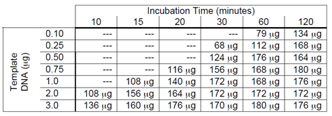 T7-FlashScribe™ transcription reactions with varying DNA inputs and