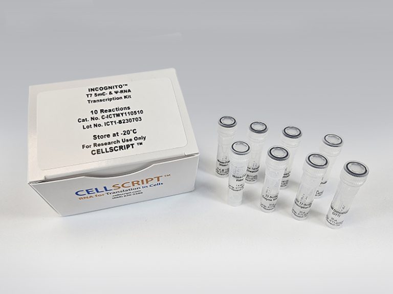 INCOGNITO™ kits or other products or services comprising N1-methyl-pseudouridine, pseudouridine, 5-methyl-cytidine and/or other modified nucleotides for use in making RNA or mRNA (the “Products”) that are covered by technologies and IP disclosed in U.S. Patent Nos. 8,278,036 and 9,750,824 and PCT Publ. Nos. WO 2007/024708 and WO/2011/071931 and U.S. and international divisional, continuation, or other patents and patent applications derived therefrom that are owned by the University of Pennsylvania and licensed to CELLSCRIPT (“Products”) are sold for research use only.