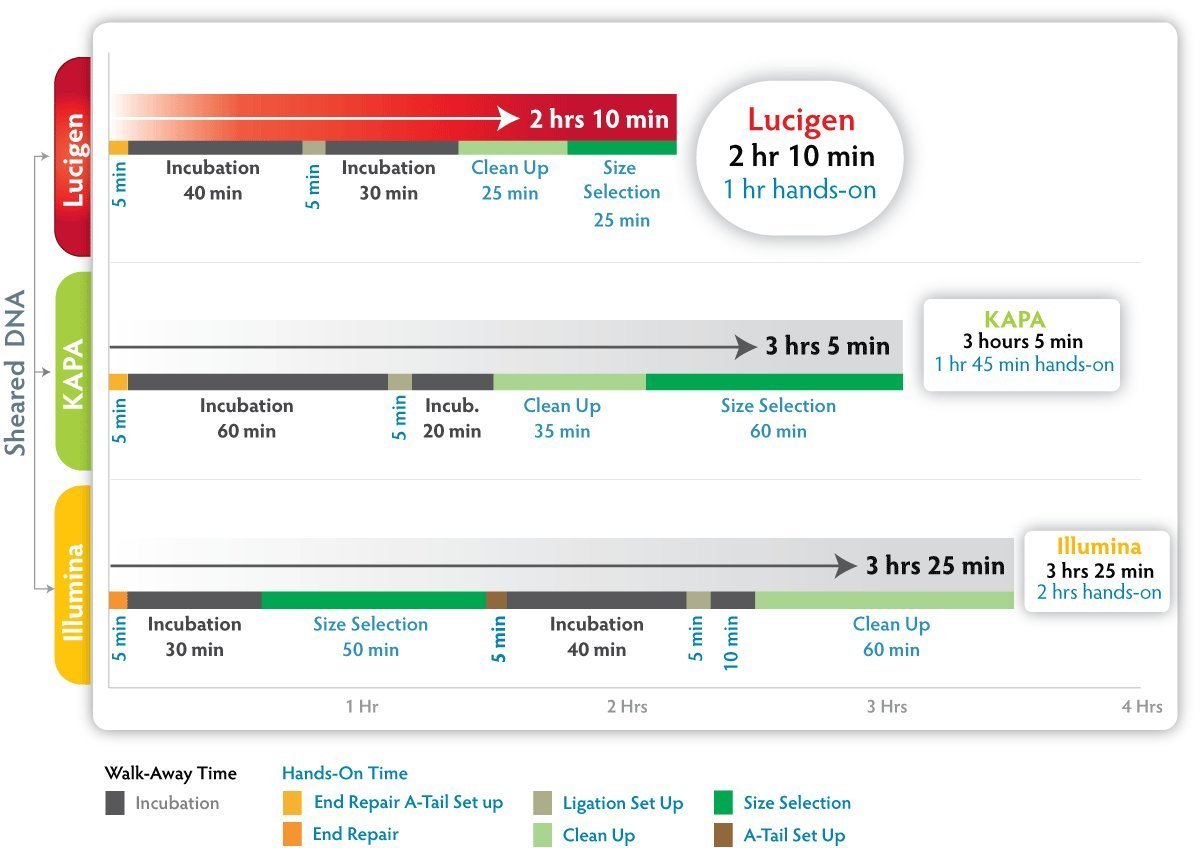 - Fast: 2 hour, 10 minute protocol saves you time and gets your samples on the sequencer sooner.