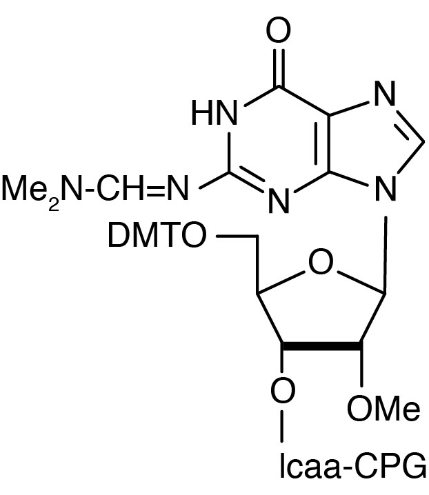 5'-Dimethoxytrityl-N-dimethylformamidine-Guanosine,2'-O-methyl, 3'-succinoyl-long chain alkylamino-CPG |