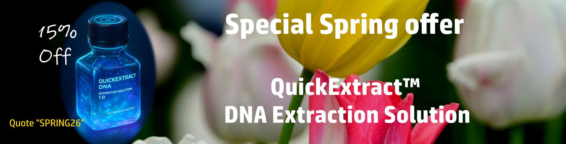 In these times of tight budgets, it’s often difficult to find the right product at a reasonable price. That’s why we at Cambio are running a special discount of 15% off every order of QuickExtract DNA Solution (QE09050 or QE09050T) placed before 31st March 2026.